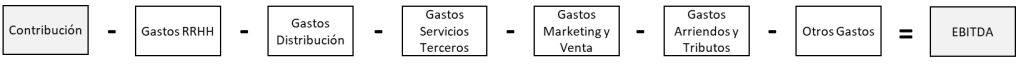 Posteriormente para poder empezar a hablar de una rentabilidad operacional (EBITDA: Earnings Before Interest, Taxes, Depreciation and Amortization) debemos explicar la composición de la siguiente fórmula: