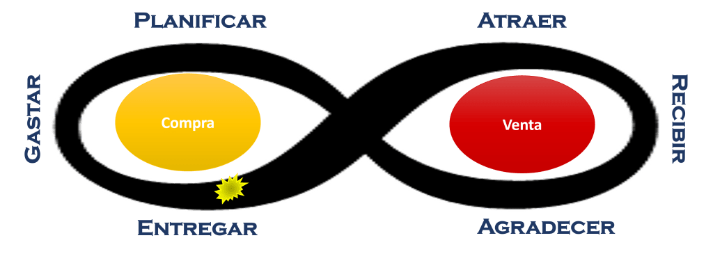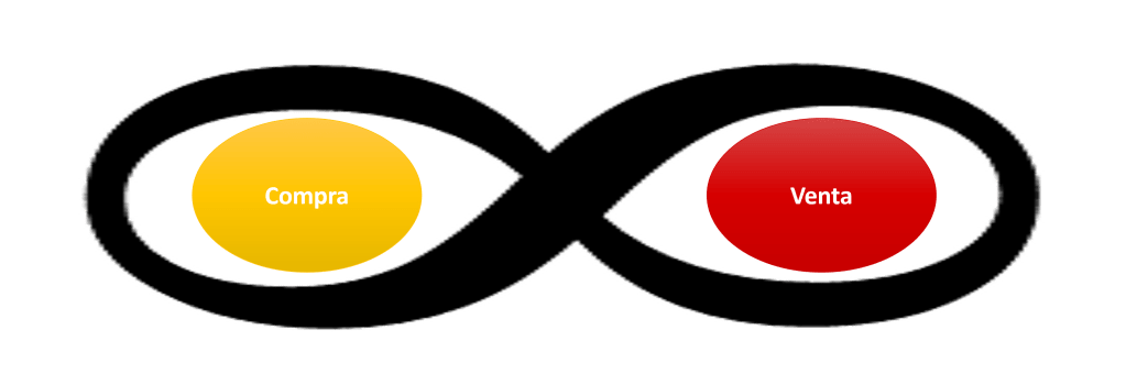 Finalmente, podemos aterrizando nuestro modelo infinito a un diagrama de diferentes procesos interconectados entre la Compra y la Venta.